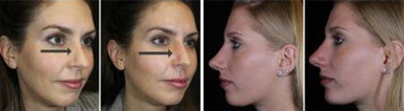 برای مثال اگر شما بخواهید برآمدگی‌های روی پل بینی خود را برطرف کنید، پزشک می‌تواند این نوع ژل را در اطراف برآمدگی بینی شما تزریق کرده تا شکل برآمدگی هموار شود. اگر بینی شما تورفتگی، بیرون‌زدگی یا انحراف داشته باشد وی می‌تواند به روش مشابه حجم پل بینی شما را افزایش داده تا سطح آن صاف شده و ناهمواری‌های آن از بین برود. اگر نوک بینی شما گوشتی است با اضافه کردن حجم به قسمت‌های دیگر بینی می‌توان این ظاهر گوشتی را از بین برده و یک بینی با ظاهری متعادل‌تر به وجود آورد.