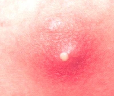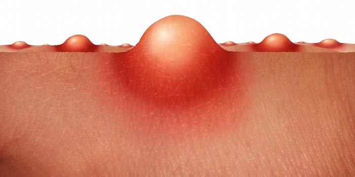 یک برآمدگی قرمزرنگ دردناک روی پوست ظاهر میشود.