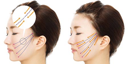 لیفت صورت با نخ یک روش جایگزین کم تهاجمی و ساده برای لیفت صورت معمولی است. این روش برای افرادی که به علائم اولیهی سالخوردگی دچار شدهاند و پوست آنها کمی شل و افتاده شده است مورد استفاده قرار میگیرد. در طول این روش، بریدگیهای کوچکی بر روی پوست ایجاد شده و نخهای مخصوصی به درون آن وارد میشوند. این نخها کشیده شده و بدین ترتیب باعث سفت و کشیده شدن پوست و بافتهای زیرین آن میشوند و ظاهر صورت را صافتر میکنند. این تنها چند ساعت زمان برده و بدون بیحسی انجام میشود. پوست منطقهی لیفت شده بلافاصله پس از درمان کشیده شده و هرگونه افتادگی از بین رفته و پوست دوباره جذابیت قبلی خود را بازمییابد.